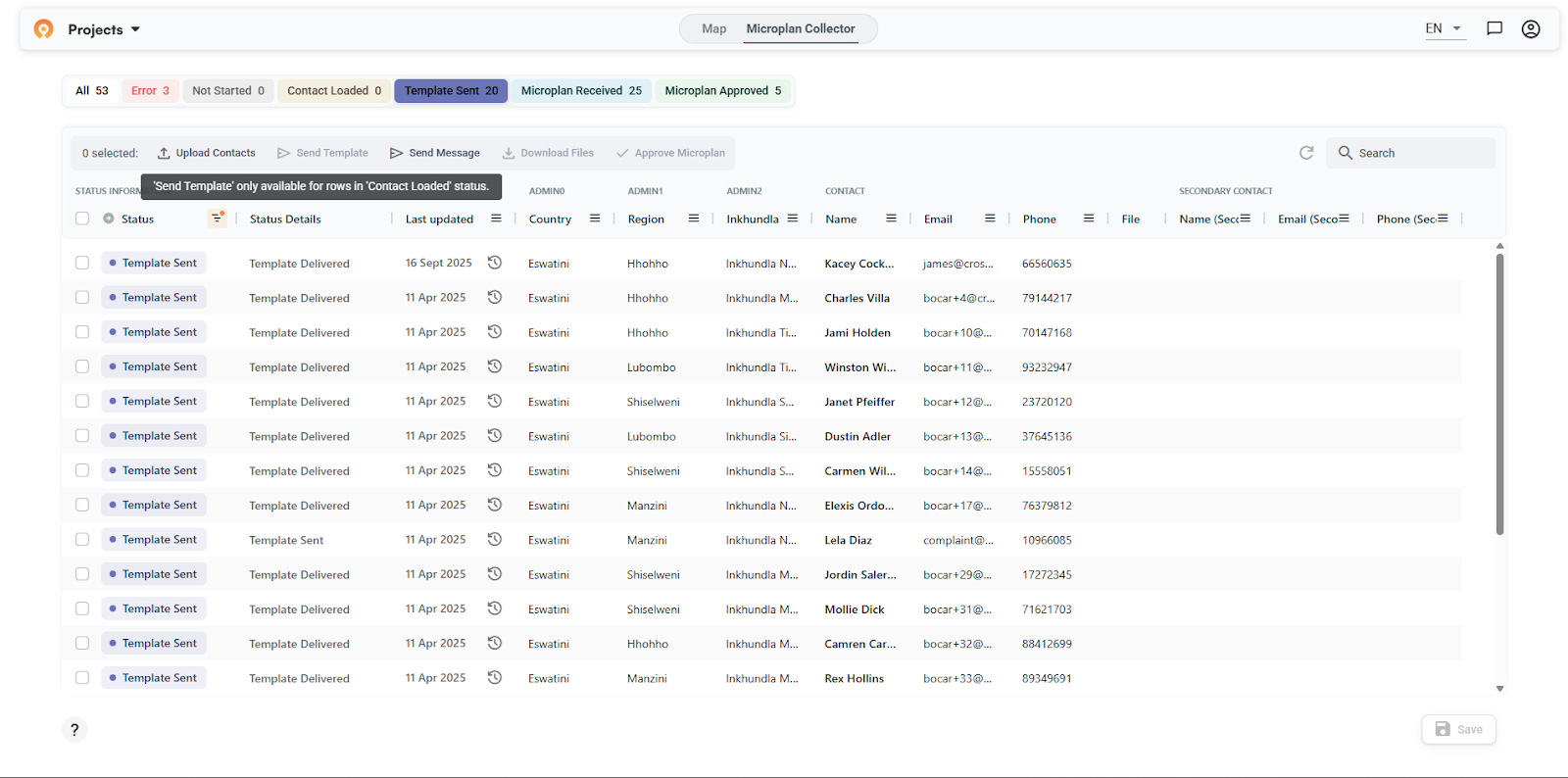 Action button tooltips. In the Microplan Collector, some action buttons grey out when they don't apply to your selected rows. This prevents errors if you try something that doesn't make sense. People weren't sure why buttons were greyed out, so we added simple tooltips that explain what you need to do to unlock each action.