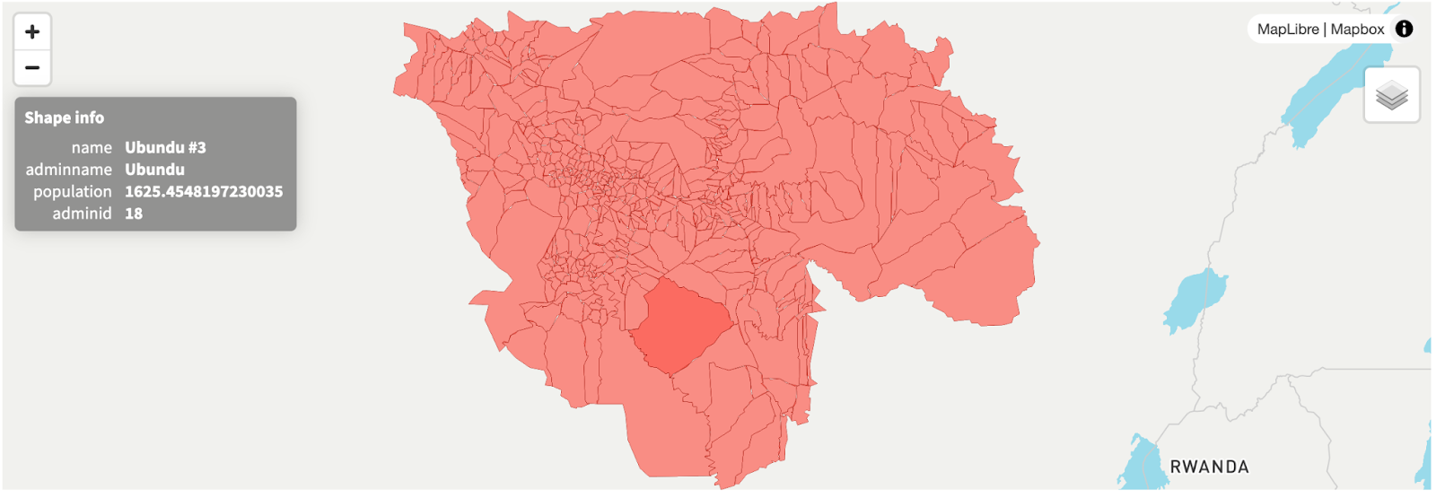 Take our Democratic Republic of Congo dataset on HDX as an example. With over 1,600+ downloads, it includes catchments for the entire country, broken down by province. Each file contains thousands of settlement-based catchments with their associated population data. These files are refreshed annually as new population estimates and settlement information becomes available, so teams can rely on them staying current.