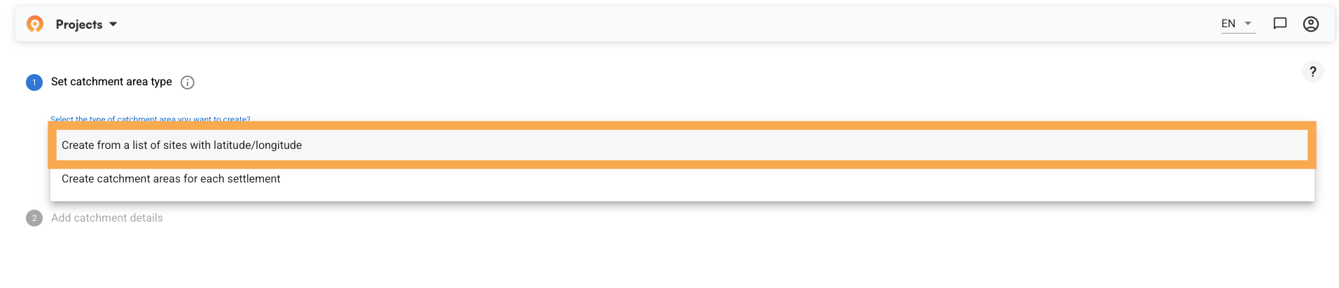 Step 1: Set your catchment area type
