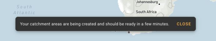 The app will notify you that your catchment areas are being created and will be ready in a few minutes. You can see your new project in the Projects panel on the left.
