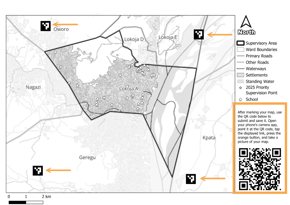 In Kogi State, Nigeria, we helped analyze last year's supervision data and identify communities that supervisors hadn't reached. We flagged those locations using points of interest and marked them as priority supervision targets on the printed maps before they went out. Field teams went in knowing exactly where coverage had been thin.